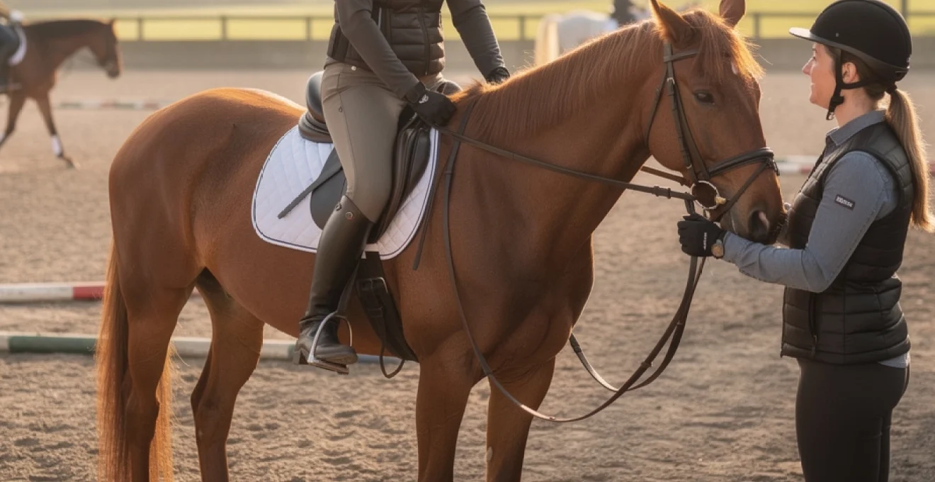 Un contact correct n’est ni totalement lâche ni rigide comme une barre de fer. On parle souvent de « mains fixées mais souples » : fixées dans l’espace pour donner un repère clair au cheval, mais souples dans les articulations pour accompagner son mouvement. Si vous avez tendance à vous accrocher aux rênes pour garder l’équilibre, revenez au travail sur l’assiette et les jambes : les mains doivent dialoguer avec la bouche du cheval, pas servir de béquille.